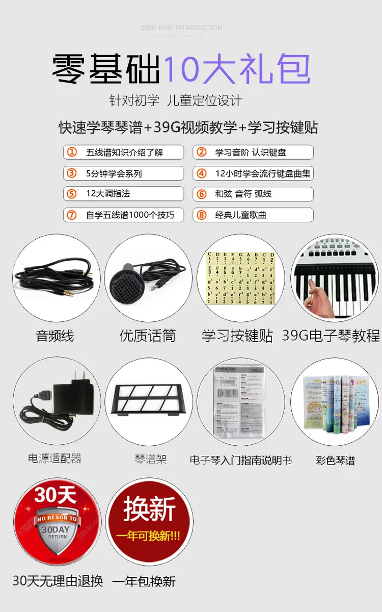 Best Quality 61 Key Piano Electronic Keyboard Charging Beginners Children'S Educational Men's Non-88 Toy Product