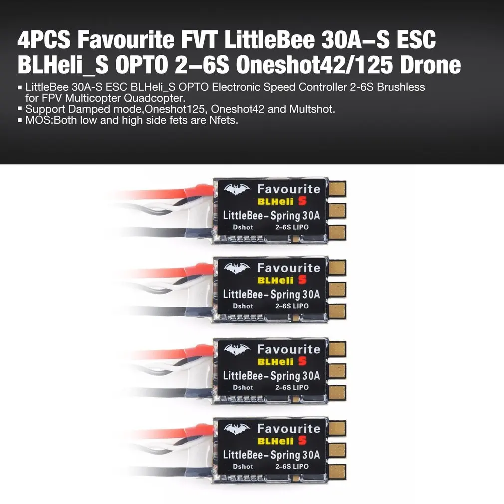 4PCS Favourite FVT LittleBee 20A-S 30A-S ESC BLHeli_S OPTO 2-6S Mulitshot Oneshot42/125 Electronic
