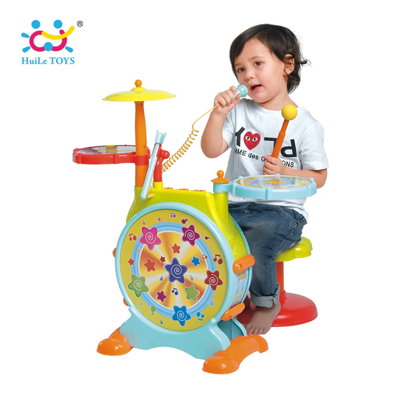 HIGH QUALITY HOLA 666 Baby Toys Electronic Toy Drum with Adjustable Sing-along Microphone and Stool Electric Bea