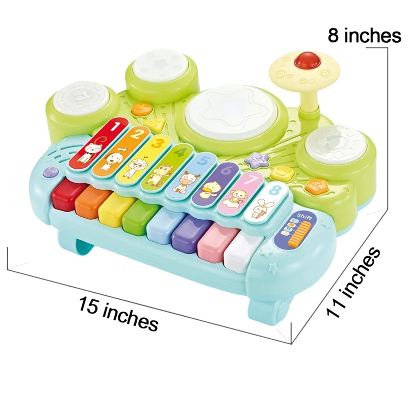 TOP 3-In-1 Musical Instrument Toy Electronic Piano Keyboard Xylophone Drum Set with Sticks Musical Toys