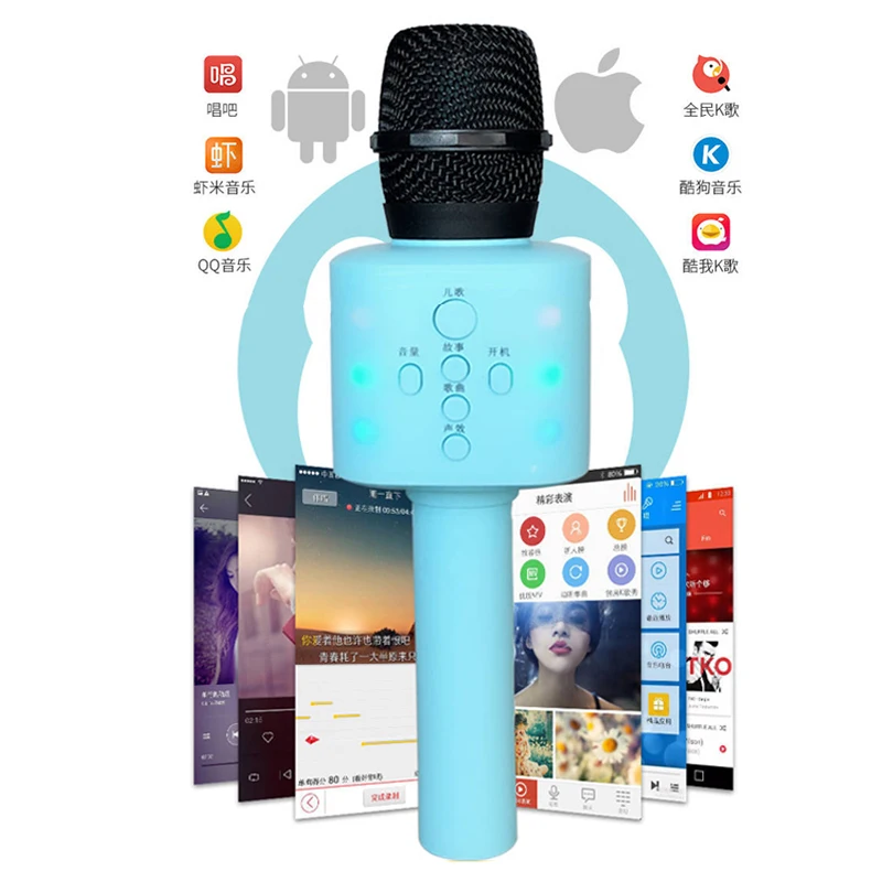 Kids Emulated Microphone Karaoke USB Wireless Microphone Music Toy Party Song with Light Effect For